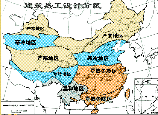 下圖是中國(guó)熱工分區(qū)標(biāo)準(zhǔn)與分區(qū)圖(不難看出,石家莊屬于寒冷地區(qū)):