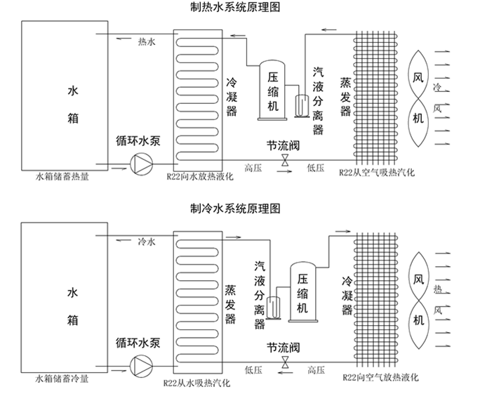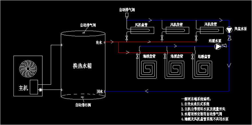 二、【一源兩末端】空氣能熱泵采暖制冷系統原理圖