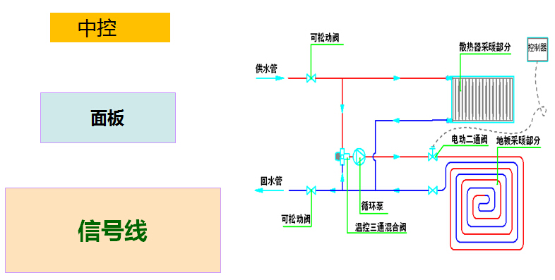 蓄能水箱、水力分配、循環泵、電動閥、水路布置形式(采用同程、異程還是分級分水形式)。